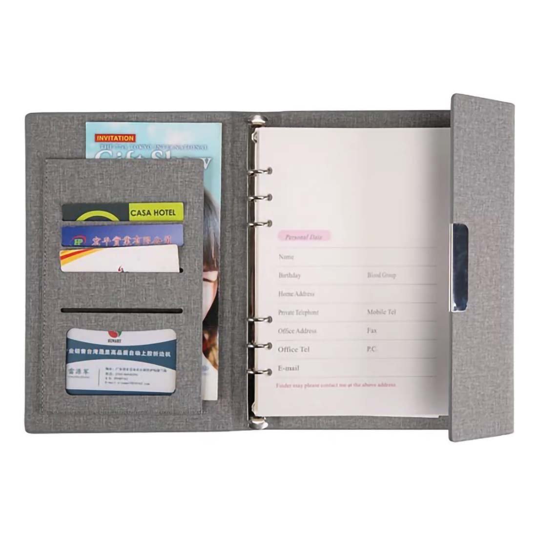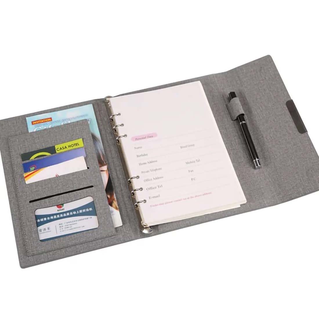 A5 size notebook, 4 card holder slots, 90 sheets 100g